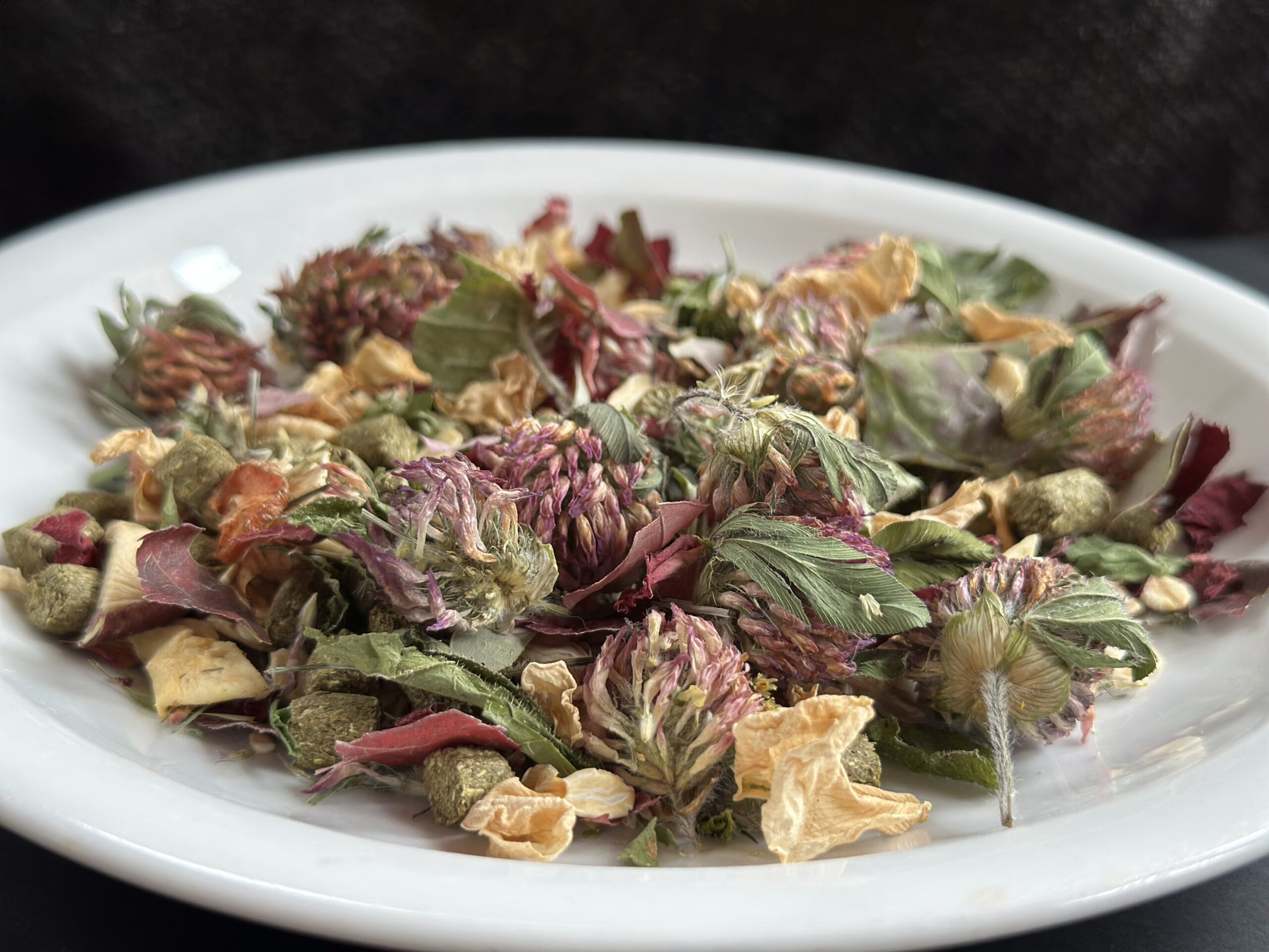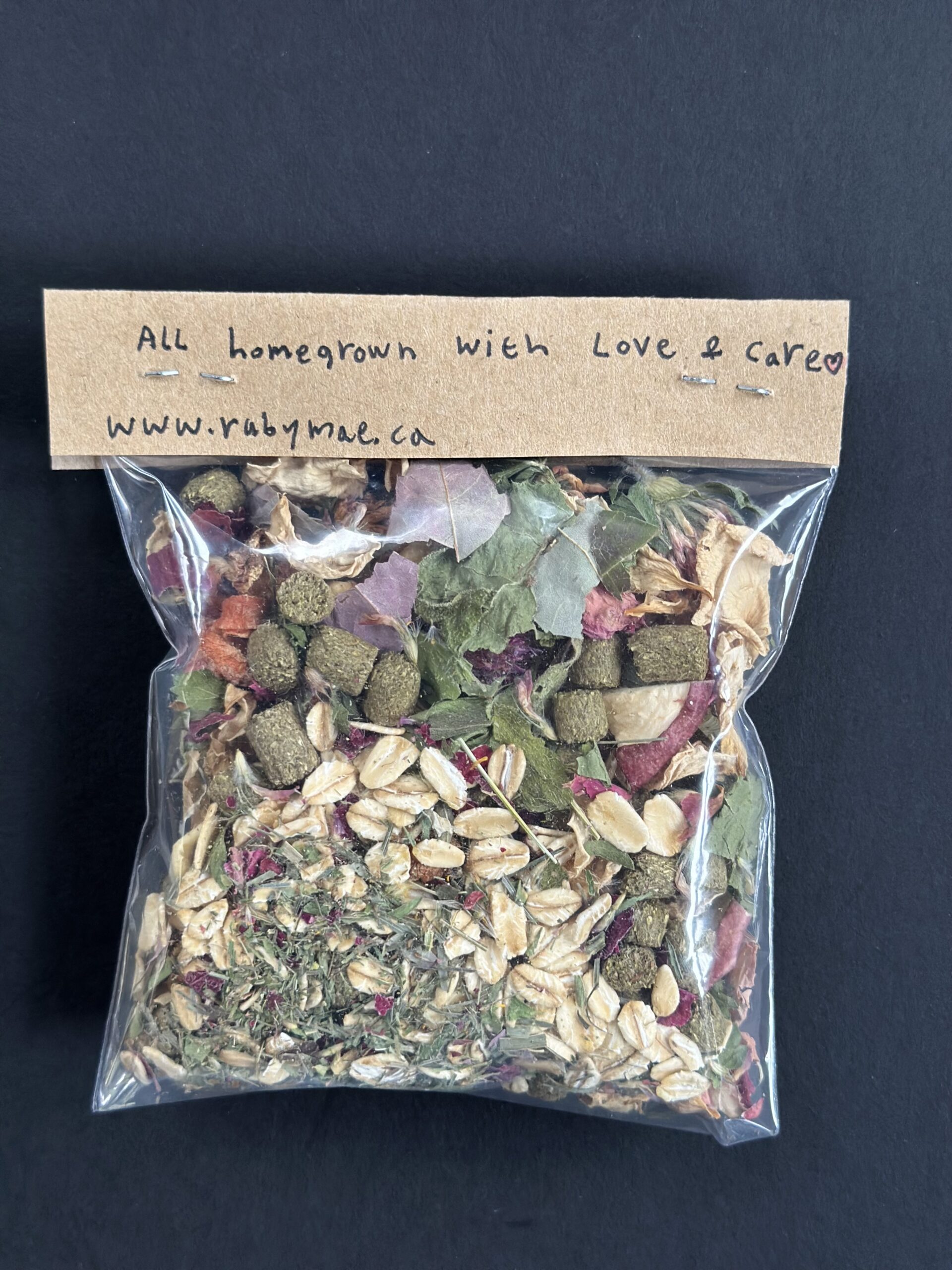 Indulge your cherished bunny with the delicate essence of my Homegrown Rose Petal Bunny Herb Mix. Thoughtfully cultivated and gently blended, this all-natural supplement offers a delicious and nutritious addition to your rabbit’s diet, bringing the sweet scent of a blooming garden directly to their hutch.