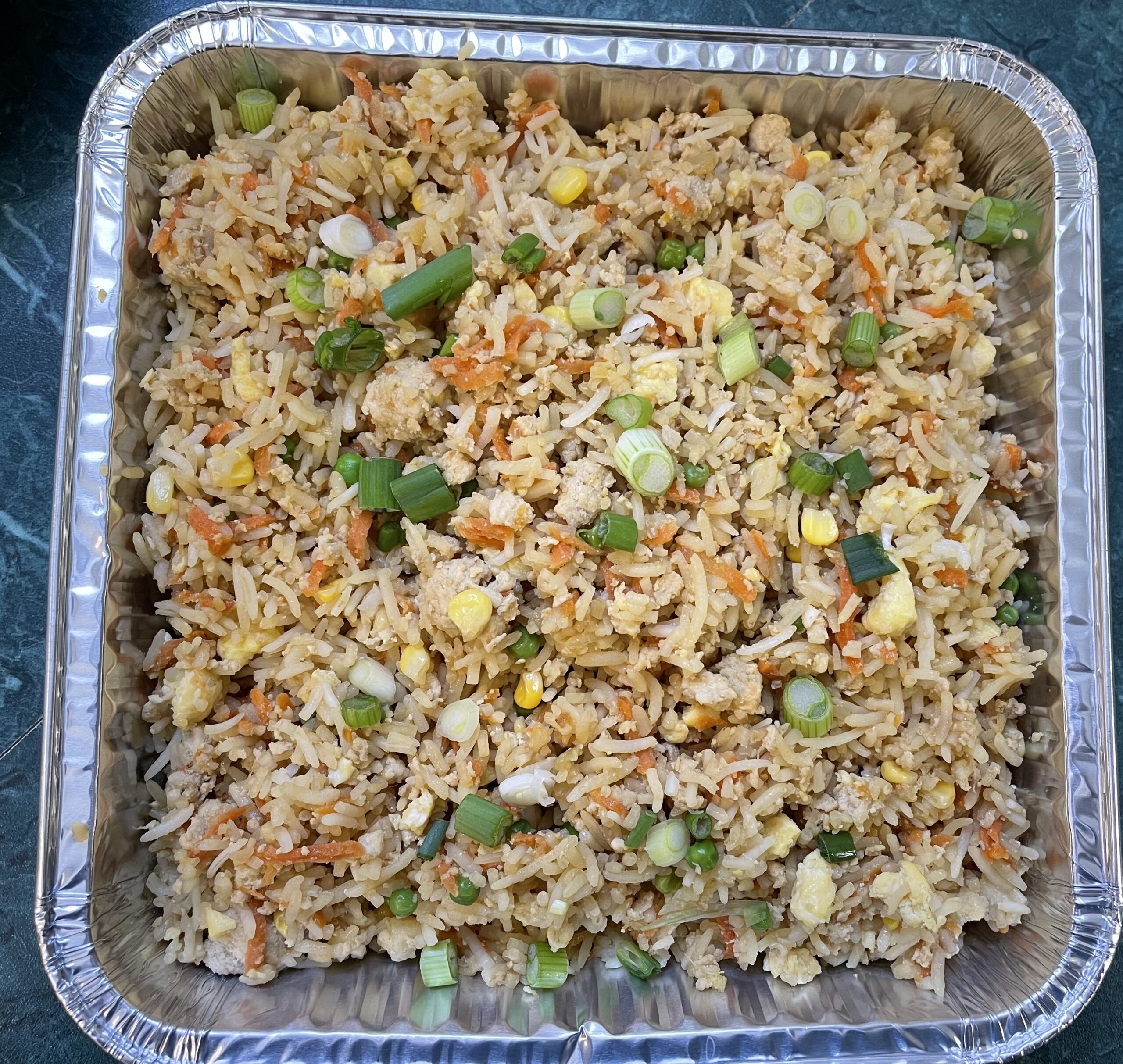 Protein-packed, turkey fried rice. Eat on its own as a meal or share with a partner as a side dish.