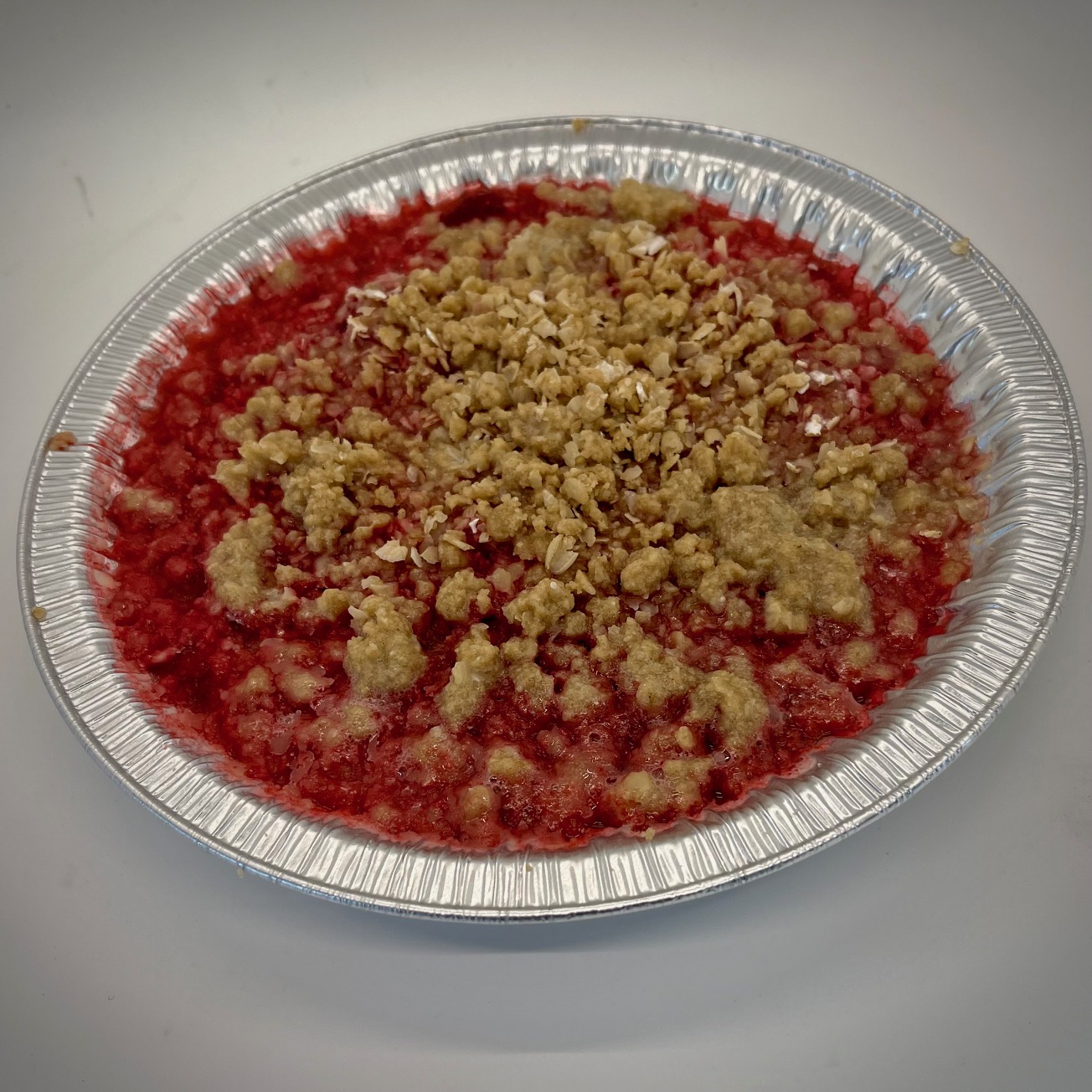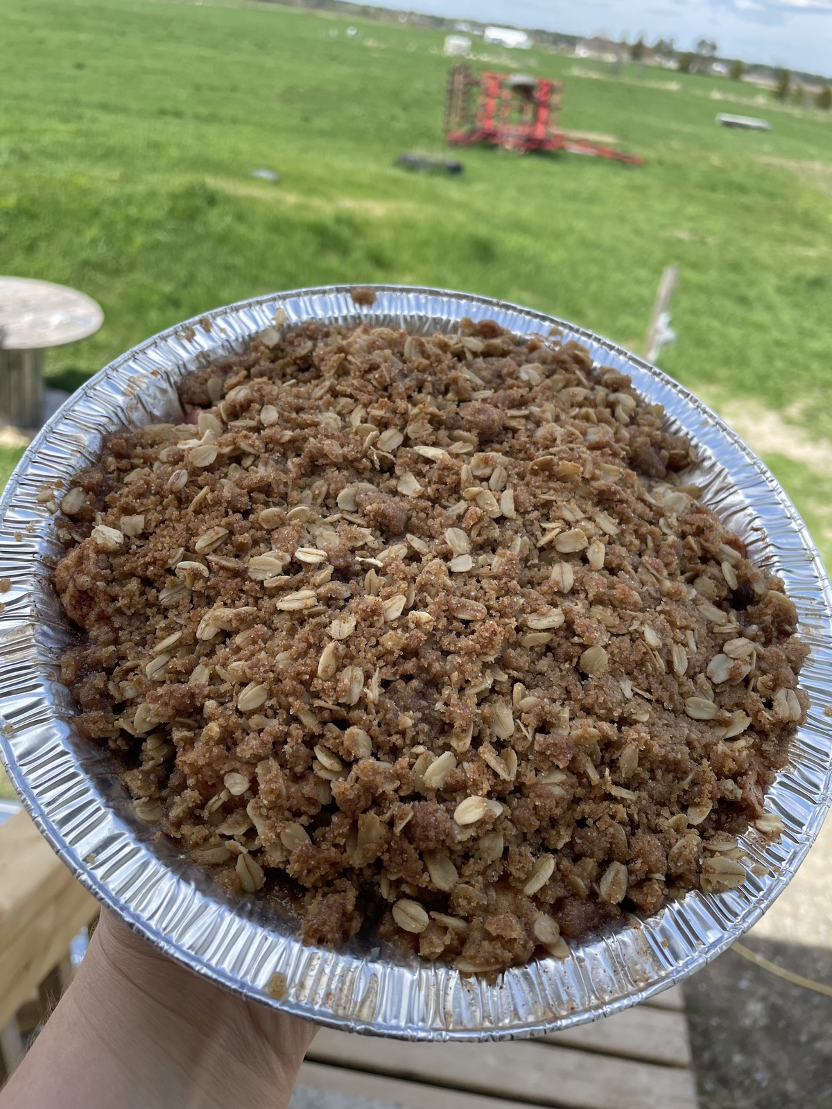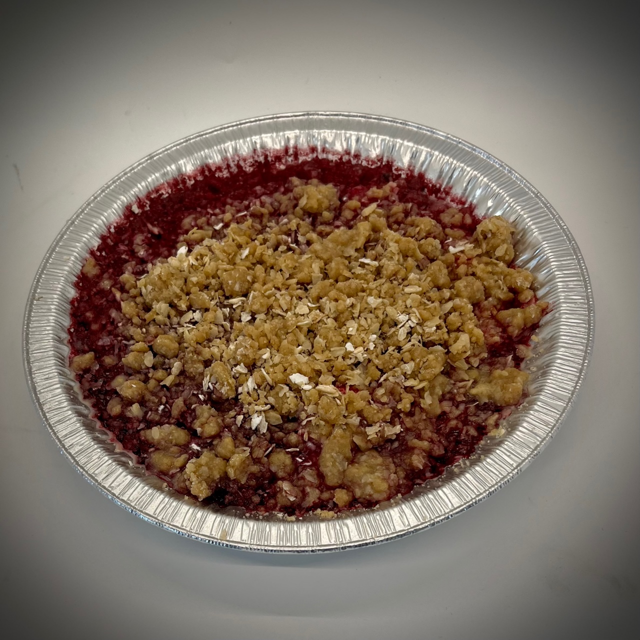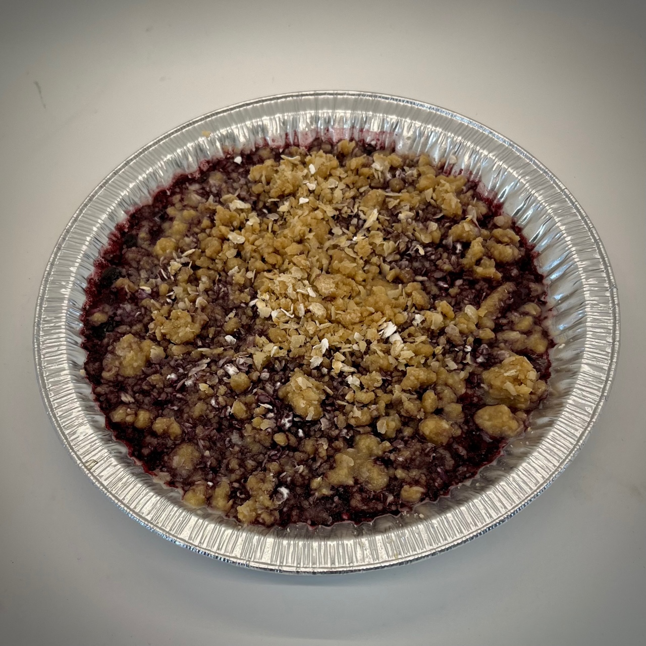 8″ – These fruit crisps are lightly sweetened with Creekbend Honey, then topped with Poschaven Farms Oats & Flour Crumble, brown sugar & butter. They are prebaked, so just thaw overnight & reheat in the oven for a saucy, crisp homestyle dessert.