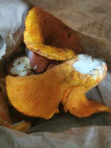 Lobster mushrooms are a seasonal treat that taste and looks just like lobster. Available for a very limited time. Comes to you in a paper bag, weighing 8 ounces. Must be washed before cooking. Cook in garlic butter and enjoy in a quiche or our favorite recipe (lobster mushroom ‘seafood’ linguine). Find a good example here. :https://findingmyinnerchef.wordpress.com/2018/07/31/lobster-mushroom-pasta/