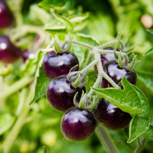The purple color reflects the increased antioxidant content and presents a beautiful color and contrast on the plate, with a richer and sweeter flavour than red cherry tomatoes.