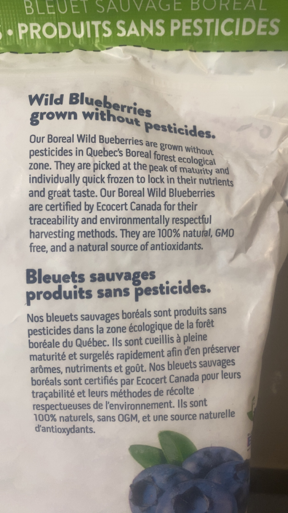 IQF (Individually Quick Frozen) wild blueberries. Canadian Wild Blueberries are harvested at their peak maturity, cleaned, and individually quick frozen (IQF). 100% natural and GMO free.