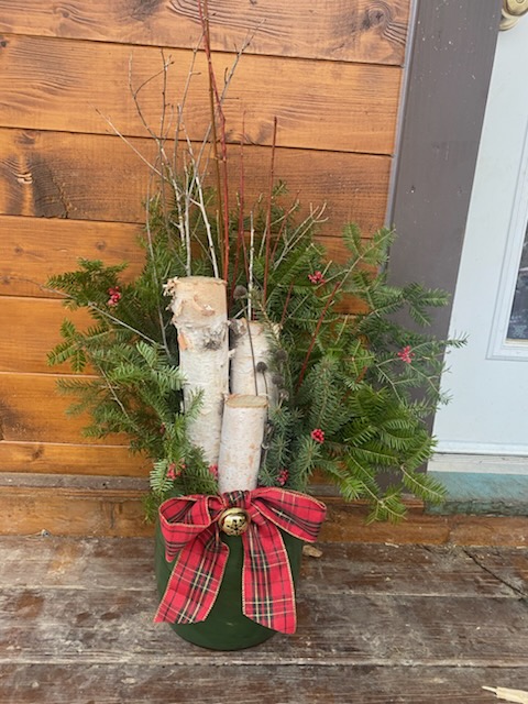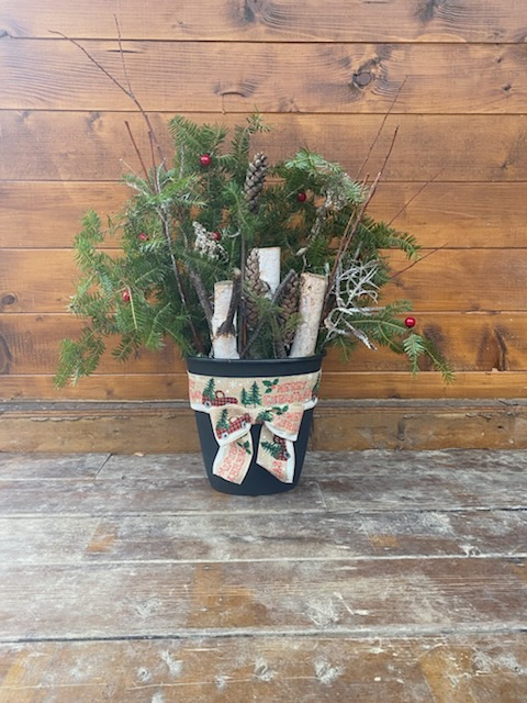 All natural holiday decor, harvested from the forest in Verner and Felid area. Bring some colour to your front porch with beautiful hand crafted planters made with Pine, Poplar, Dog Wood, Birch and dried Black Eye Susans.